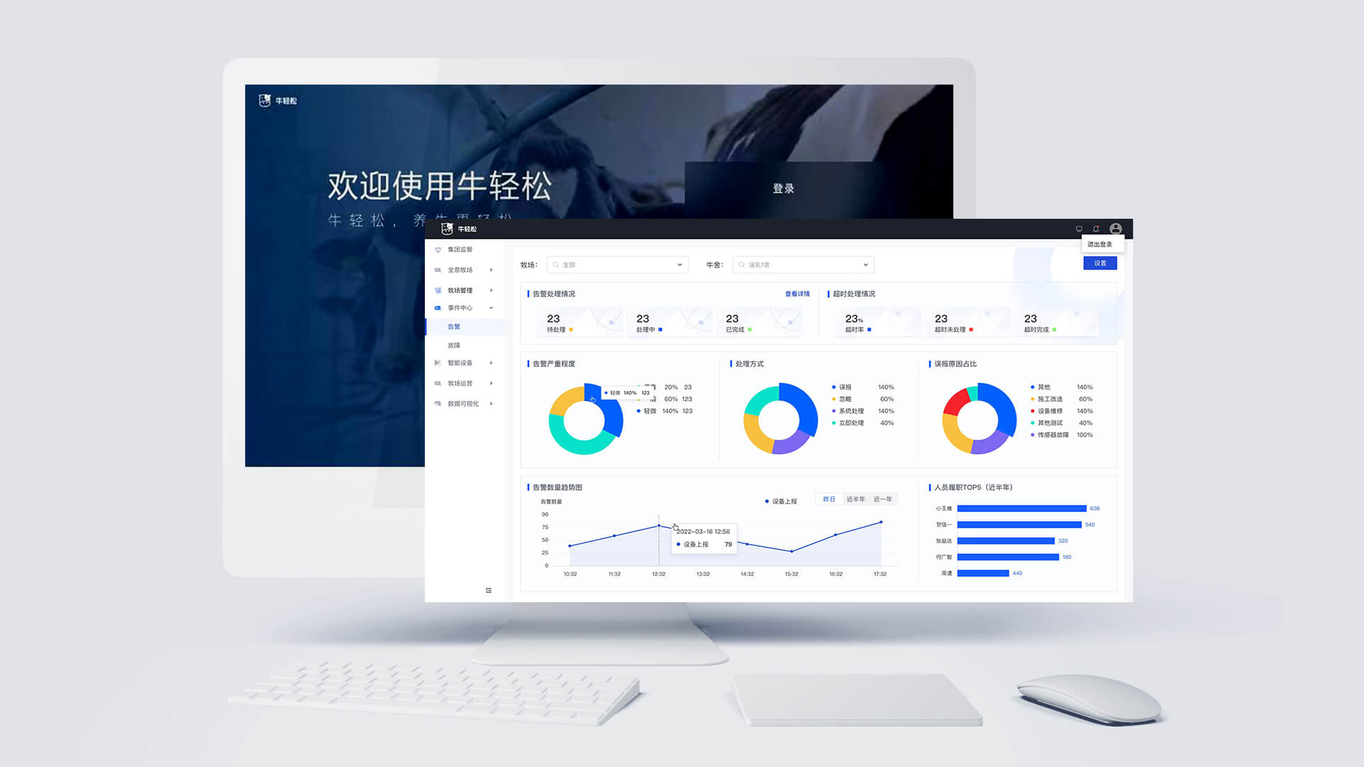 牛輕松對(duì)牧場的智能風(fēng)機(jī)系統(tǒng)、噴淋系統(tǒng)、視頻監(jiān)控系統(tǒng)、智能照明系統(tǒng)、能源監(jiān)測系統(tǒng)、環(huán)境監(jiān)測系統(tǒng)、工單系統(tǒng)等進(jìn)行統(tǒng)一的管理與聯(lián)動(dòng)配置。產(chǎn)品的應(yīng)用實(shí)現(xiàn)牧場內(nèi)所有設(shè)備的一鍵全連、協(xié)同聯(lián)動(dòng)及可視化管理,輔助牧場能夠綠色的、高效的、可持續(xù)盈利的長足發(fā)展。